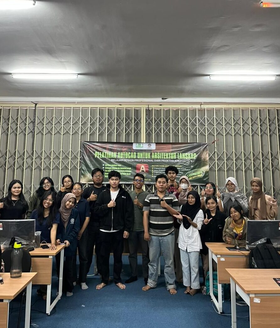 Pelatihan AutoCAD Arsitektur Lanskap telah dilaksanakan selama lima hari dengan diikuti oleh 18 peserta Kegiatan berlangsung dalam suasana belajar yang tertib dan interaktif, diawali dengan pembukaan dan pengarahan, kemudian dilanjutkan dengan sesi praktik intensif setiap harinya. Selama pelatihan, peserta didampingi langsung oleh instruktur dan mendapatkan arahan serta koreksi secara bertahap. Antusiasme peserta terlihat dari kehadiran yang konsisten hingga hari terakhir serta kesungguhan dalam menyelesaikan setiap tahapan kegiatan. Pada akhir kegiatan, dilakukan evaluasi dan pembagian sertifikat sebagai bentuk refleksi bersama dan bukti atas proses yang telah dilalui. Secara umum, pelatihan berjalan lancar dan mendapat antusiasme positif dari peserta. Diharapkan kegiatan ini dapat terus menjadi ruang pengembangan kompetensi di bidang arsitektur lanskap.